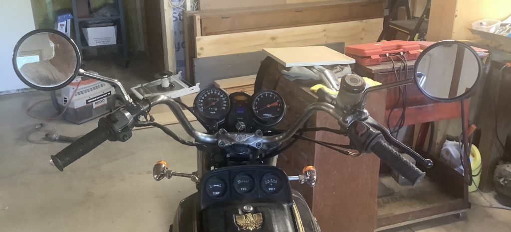 The GL1000 was basically done. Everything works. Everything is either black or shiny. Nothing is missing. Nothing leaks. It rides like a bat out of Hell.