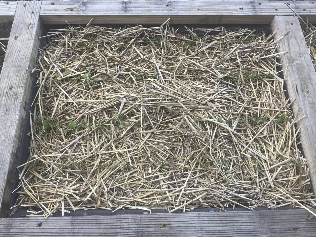 And now, all that’s left is the soaker hose, the manholes, and some volunteer flowers left over from years past.